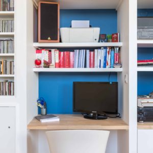 2 – Le client avait également besoin de beaucoup de rangement pour ses livres, ses CD et un système audio avec platine.