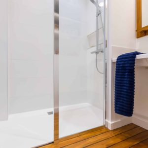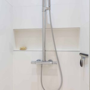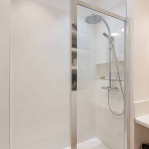 4 – N’ayant pas l’envie d’une baignoire, l’option d’une grande douche a été validée, ce qui a permis en même temps de rendre le WC indépendant.