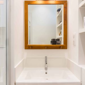 4 – Des impostes vitrées ont été créées au-dessus des portes menant à la nouvelle salle d’eau et au WC séparé afin d’y apporter de la lumière naturelle venant de la grande pièce à vivre.