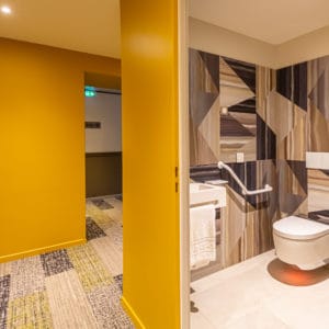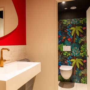 Le WC handicapé se trouvait dans les sanitaires des femmes. Nous avons tout redistribué pour créer un WC handicapé mixte.
