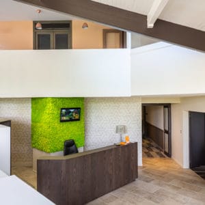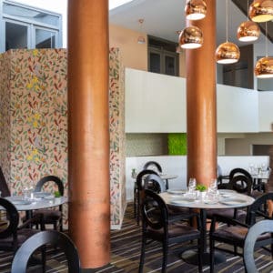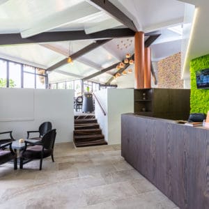 Egalement, pour être conforme aux normes PMR nous avons créé un élévateur entre le hall d’accueil et la salle de restaurant.