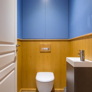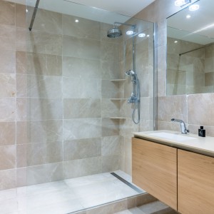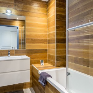 Le propriétaire souhaitait une grande salle d’eau avec une grande douche. Pour cela nous avons sorti la baignoire de cette pièce