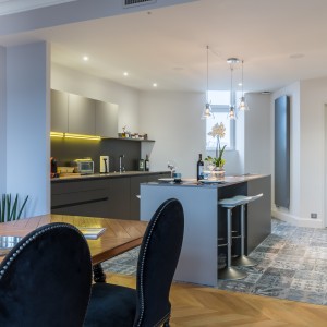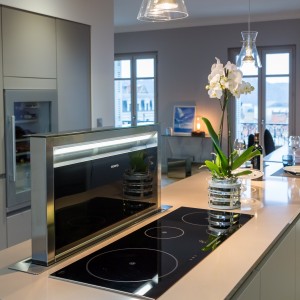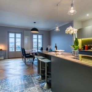 La cuisine a été ouverte sur la belle pièce de vie pour gagner en luminosité et en perspective.